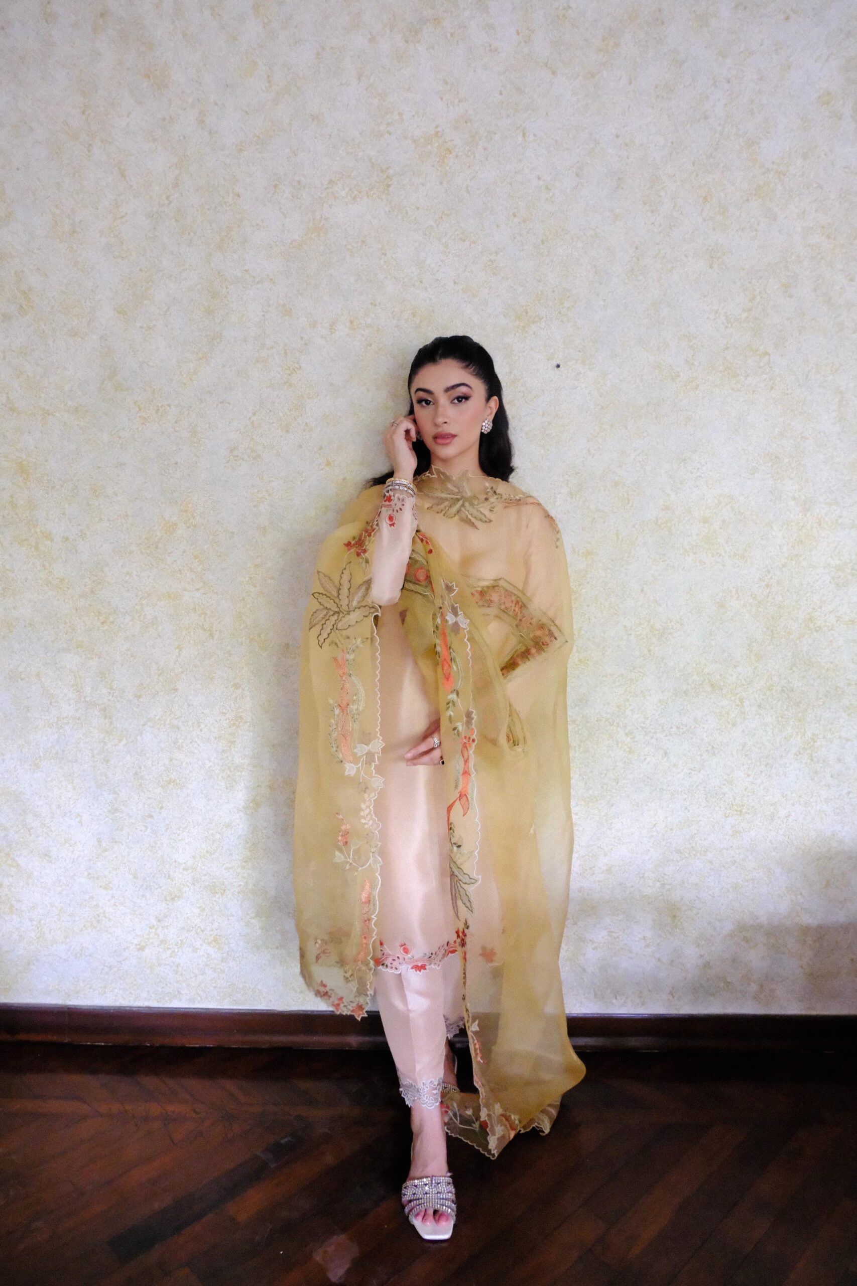 A graceful ensemble crafted in pure raw silk, this set radiates timeless elegance and luxury. Paired with a pure organza dupatta in a rich mustard hue, the contrast creates a vibrant, festive harmony. The natural sheen of raw silk adds subtle sophistication, while the light, airy organza completes the look with effortless charm.